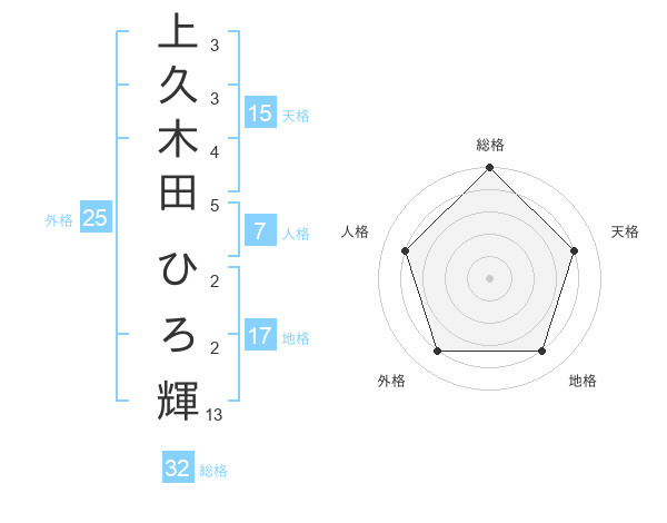 上久木田 ひろ輝さんを姓名の画数から五運を鑑定