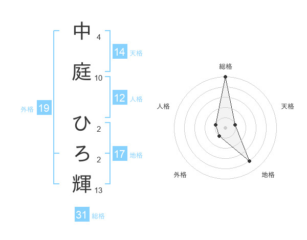 中庭 ひろ輝さんの総格は31画の5点!