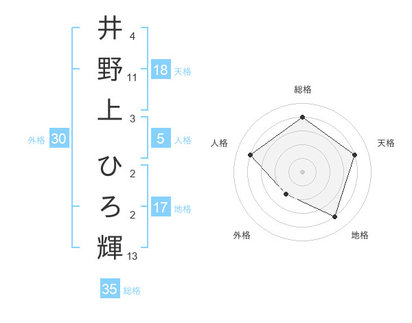 井野上 ひろ輝さんの総格は35画の4点!