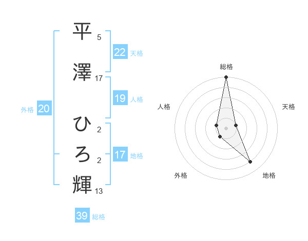 平澤 ひろ輝さんを姓名の画数から五運を鑑定