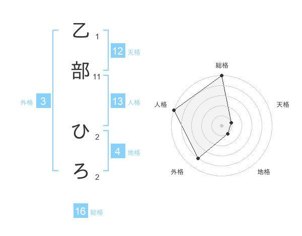 乙部 ひろさんの総格は16画の5点!