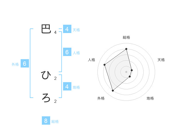 巴 ひろさんの総格は8画の4点!