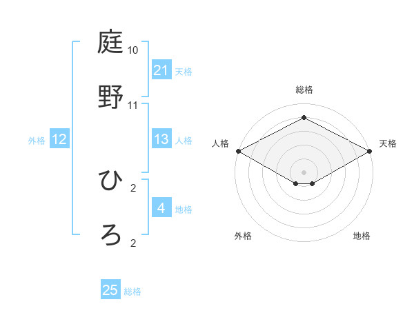 庭野 ひろさんの天格は21画の5点!