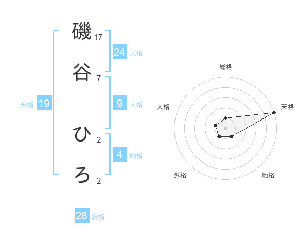 磯谷 ひろさんの天格は24画の5点!