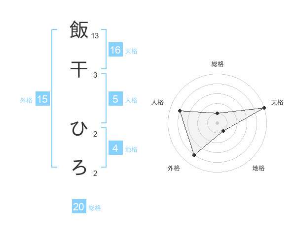 飯干 ひろさんの天格は16画の5点!