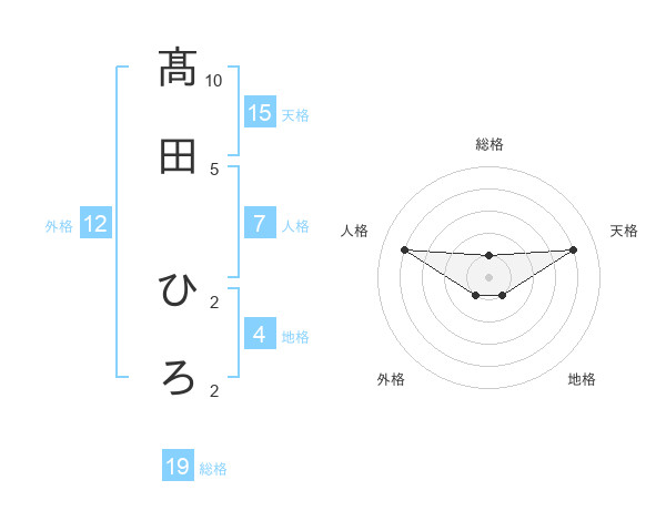 髙田 ひろさんの天格は15画の4点!