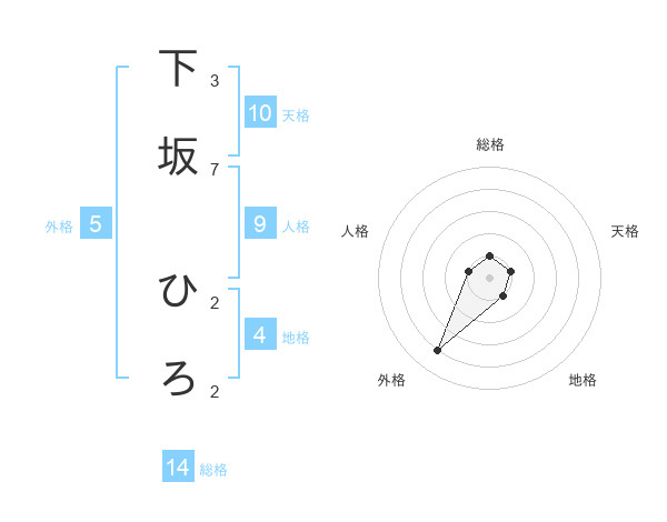 下坂 ひろさんを姓名の画数から五運を鑑定