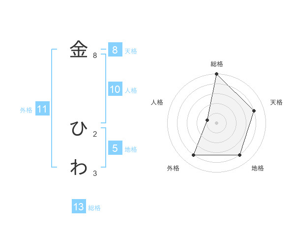 金 ひわさんの総格は13画の5点!
