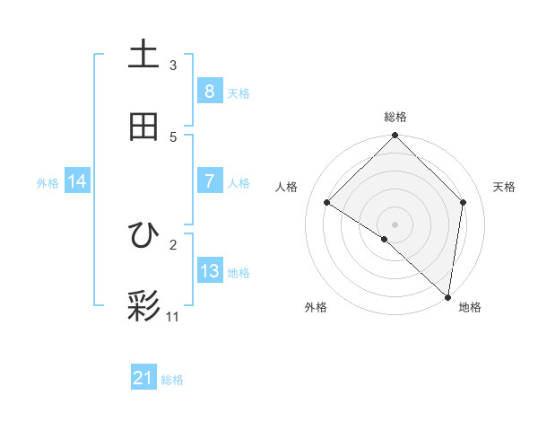 土田 ひ彩さんを姓名の画数から五運を鑑定