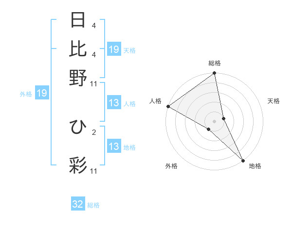 日比野 ひ彩さんを姓名の画数から五運を鑑定