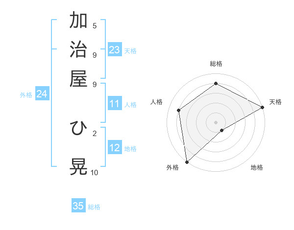 加治屋 ひ晃さんを姓名の画数から五運を鑑定