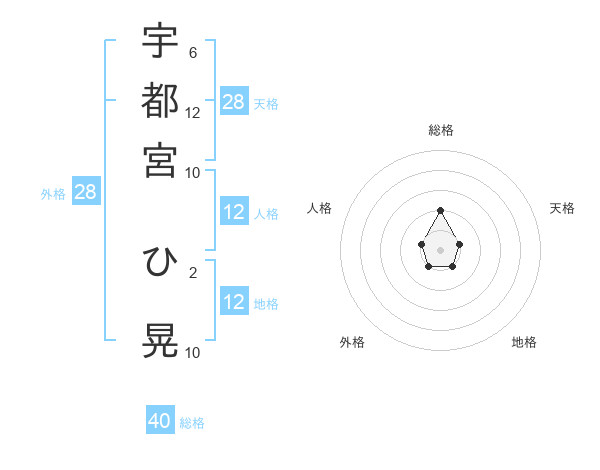 宇都宮 ひ晃さんを姓名の画数から五運を鑑定