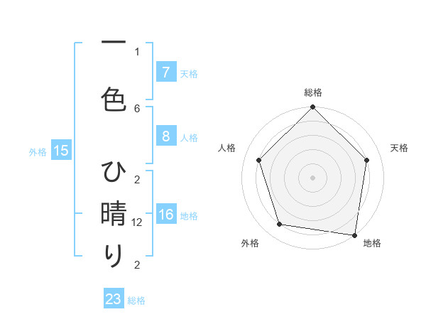 一色 ひ晴りさんを姓名の画数から五運を鑑定