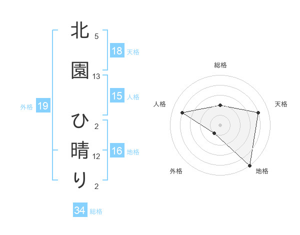 北園 ひ晴りさんを姓名の画数から五運を鑑定