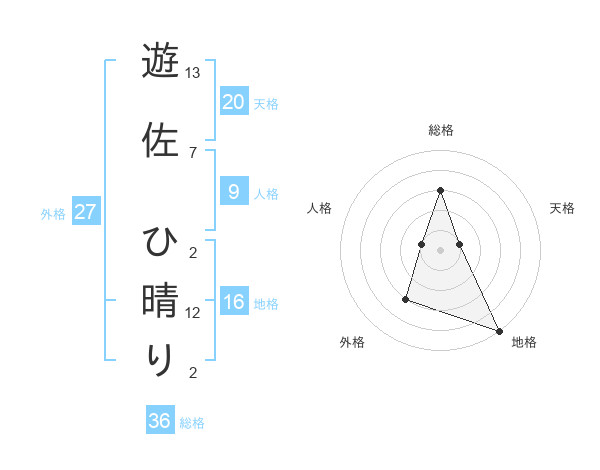 遊佐 ひ晴りさんを姓名の画数から五運を鑑定