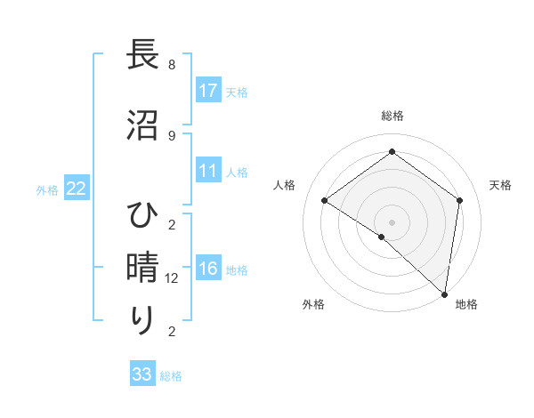 長沼 ひ晴りさんを姓名の画数から五運を鑑定