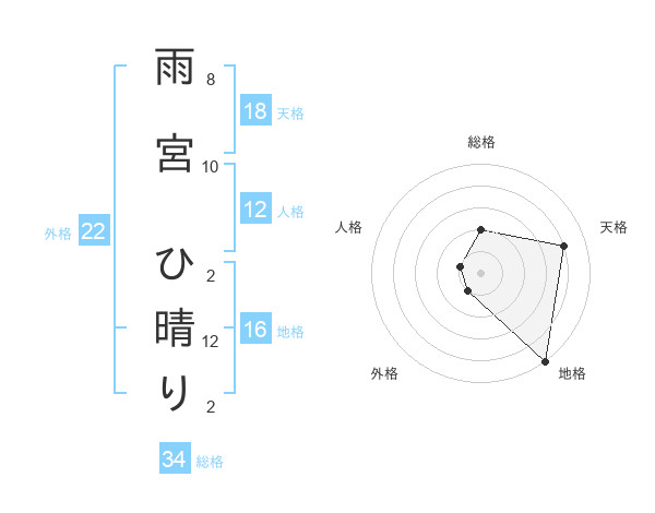 雨宮 ひ晴りさんを姓名の画数から五運を鑑定