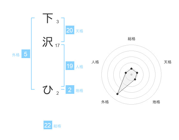 下沢 ひさんの総格は22画の1点!