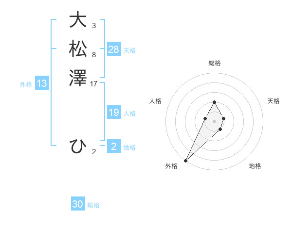 大松澤 ひさんの外格は13画の5点!