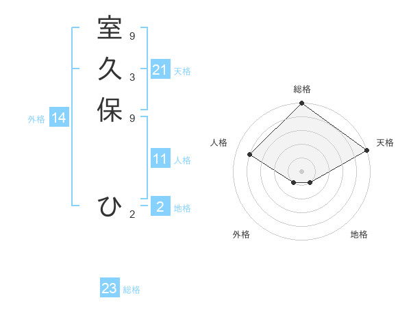 室久保 ひさんの総格は23画の5点!