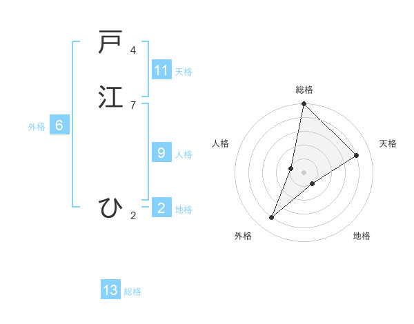 戸江 ひさんの総格は13画の5点!