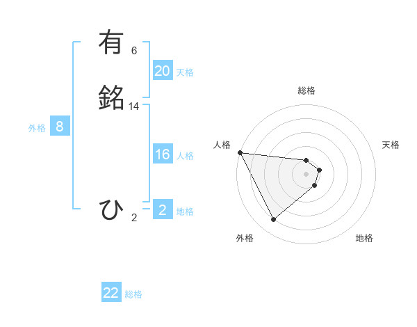有銘 ひさんの外格は8画の4点!
