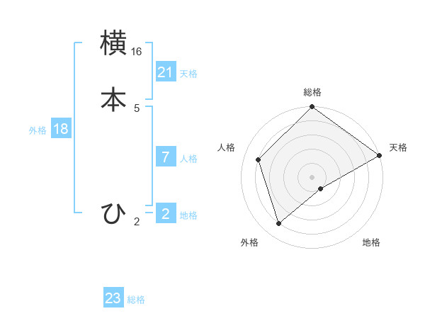横本 ひさんの総格は23画の5点!