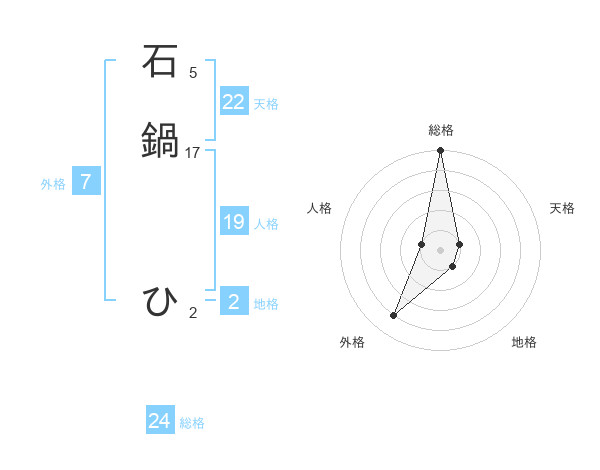 石鍋 ひさんを姓名の画数から五運を鑑定