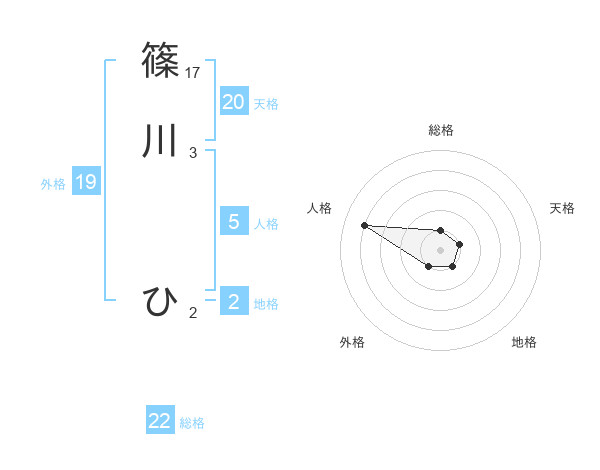 篠川 ひさんの総格は22画の1点!