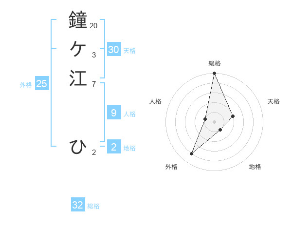鐘ケ江 ひさんの総格は32画の5点!