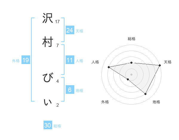 沢村 びぃさんを姓名の画数から五運を鑑定