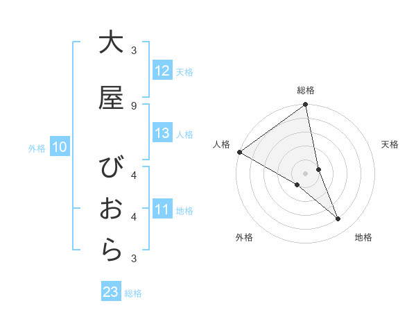 大屋 びおらさんを姓名の画数から五運を鑑定