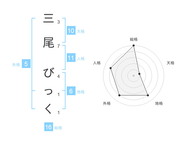 三尾 びっくさんを姓名の画数から五運を鑑定