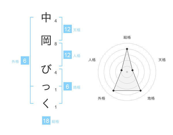 中岡 びっくさんを姓名の画数から五運を鑑定