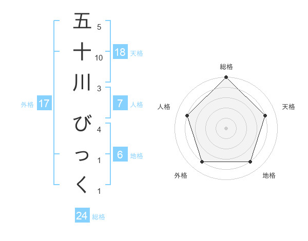 五十川 びっくさんを姓名の画数から五運を鑑定