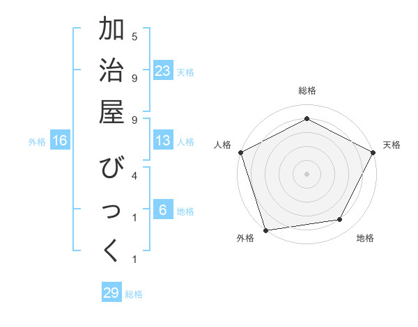 加治屋 びっくさんの天格は23画の5点!