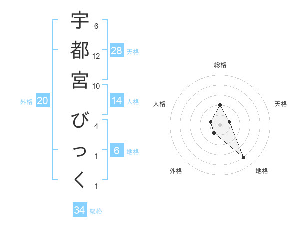 宇都宮 びっくさんを姓名の画数から五運を鑑定