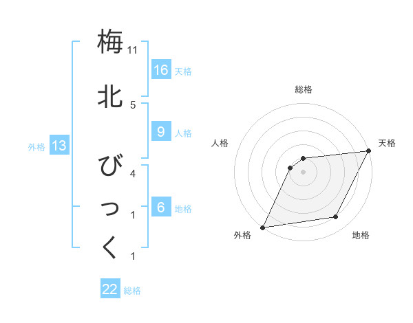 梅北 びっくさんの外格は13画の5点!
