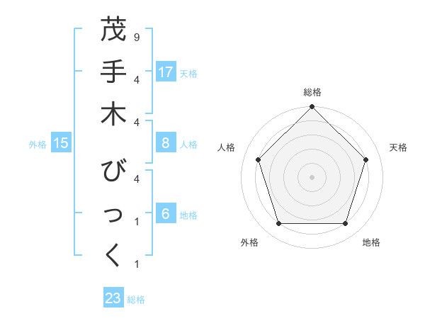 茂手木 びっくさんを姓名の画数から五運を鑑定
