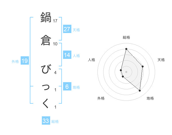 鍋倉 びっくさんを姓名の画数から五運を鑑定