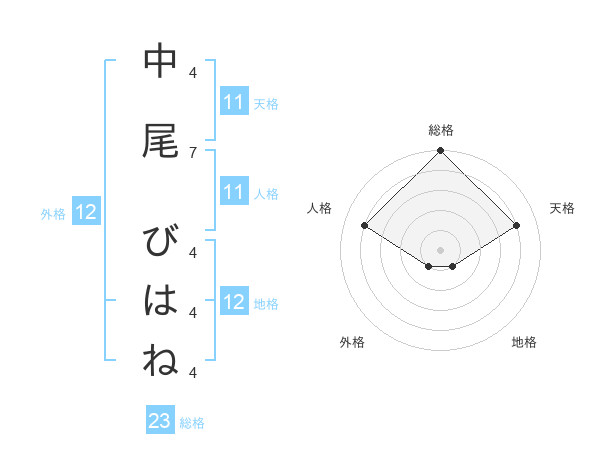 中尾 びはねさんを姓名の画数から五運を鑑定