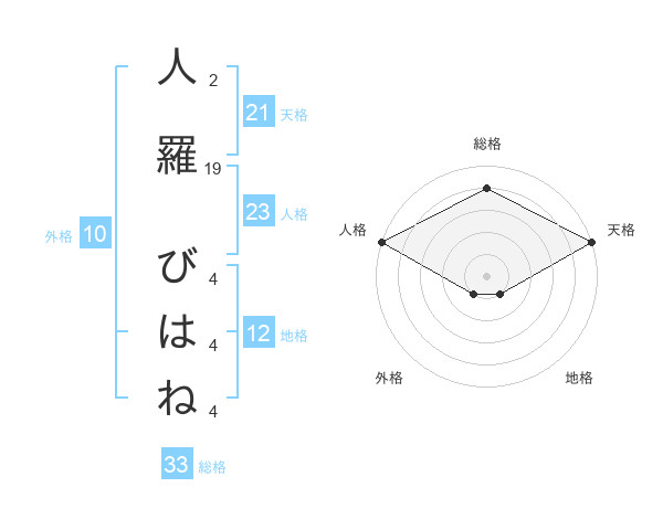 人羅 びはねさんを姓名の画数から五運を鑑定