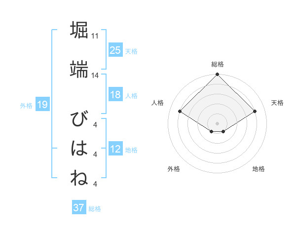 堀端 びはねさんの総格は37画の5点!