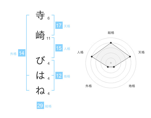 寺崎 びはねさんの総格は29画の4点!