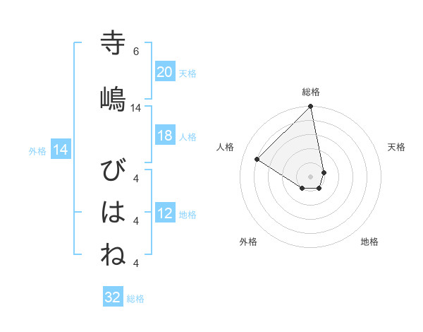 寺嶋 びはねさんの総格は32画の5点!
