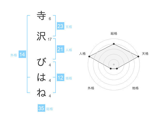 寺沢 びはねさんの総格は35画の4点!