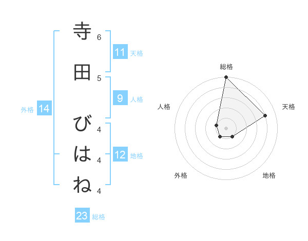 寺田 びはねさんを姓名の画数から五運を鑑定