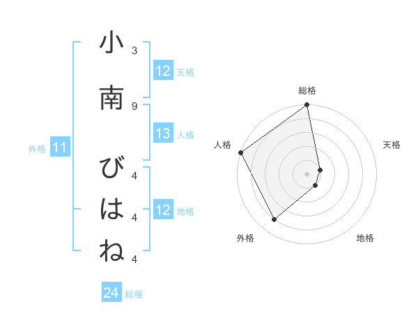 小南 びはねさんの天格は12画の1点!