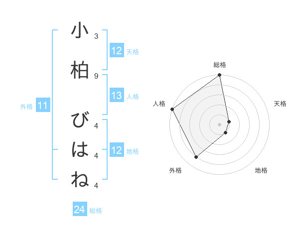 小柏 びはねさんの総格は24画の5点!