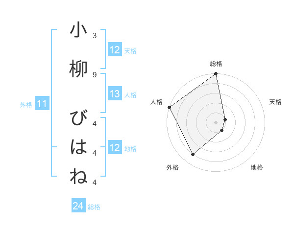 小柳 びはねさんの天格は12画の1点!
